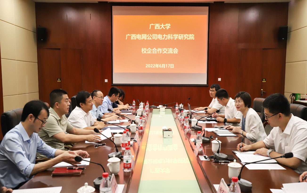 会上,电力科学研究院创新管理部的卓浩泽经理还对公司科研进展及近年来取得的成果做了专题介绍,与会专家分别就各自感兴趣的研究课题及方向进行了详细交流,校企双方商定将就建立“低碳智能电网新材料”(拟)联合实验室方案进行深入讨论,开展全方位、多领域、宽层次的合作,联合攻关广西电网、广西壮族自治区科技等科研课题。
