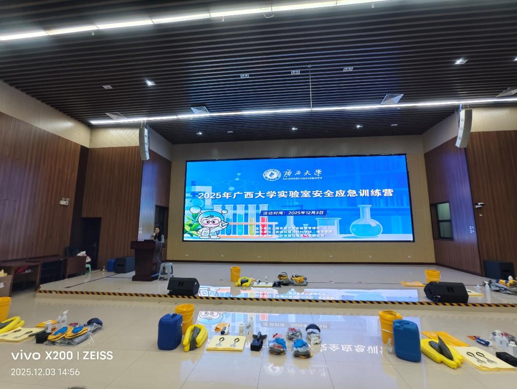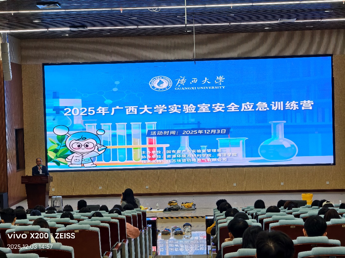 123报告厅内气氛庄重而热烈,实验室安全应急训练营在此正式开营。本次训练营由国有资产与实验室管理处牵头组织,资源环境与材料学院与海洋学院联合协办,埃德伯格公司提供技术支持,旨在强化实验室人员应急处置能力,健全实验室安全保障体系,为全校科研工作筑牢安全基石。