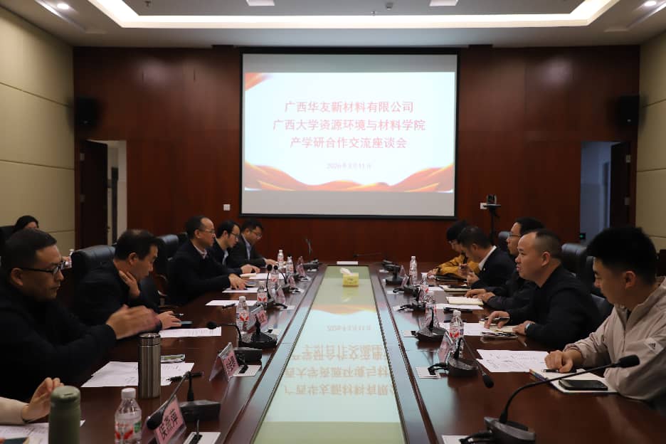 2026年3月11日,广西华友新材料有限公司代表一行莅临我院就产学研合作事宜展开深入座谈交流,聚焦有色金属资源高效利用、先进材料制备领域,共商加强合作,推动产学研深度融合。座谈会由学院党委书记沈大强主持。
