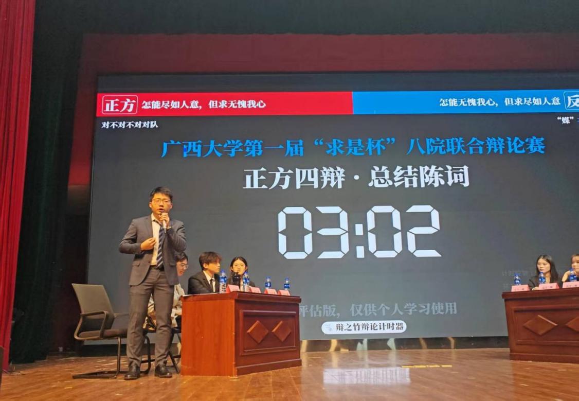 12月2日,第一届“求是杯”研究生辩论赛总决赛在大学生活动中心一楼小剧场举行。我院辩论队以扎实的立论、机敏的临场与默契的配合,一路过关斩将,最终荣获亚军。下面,让我们一同回顾这场智慧与语言交织的思辨之旅。