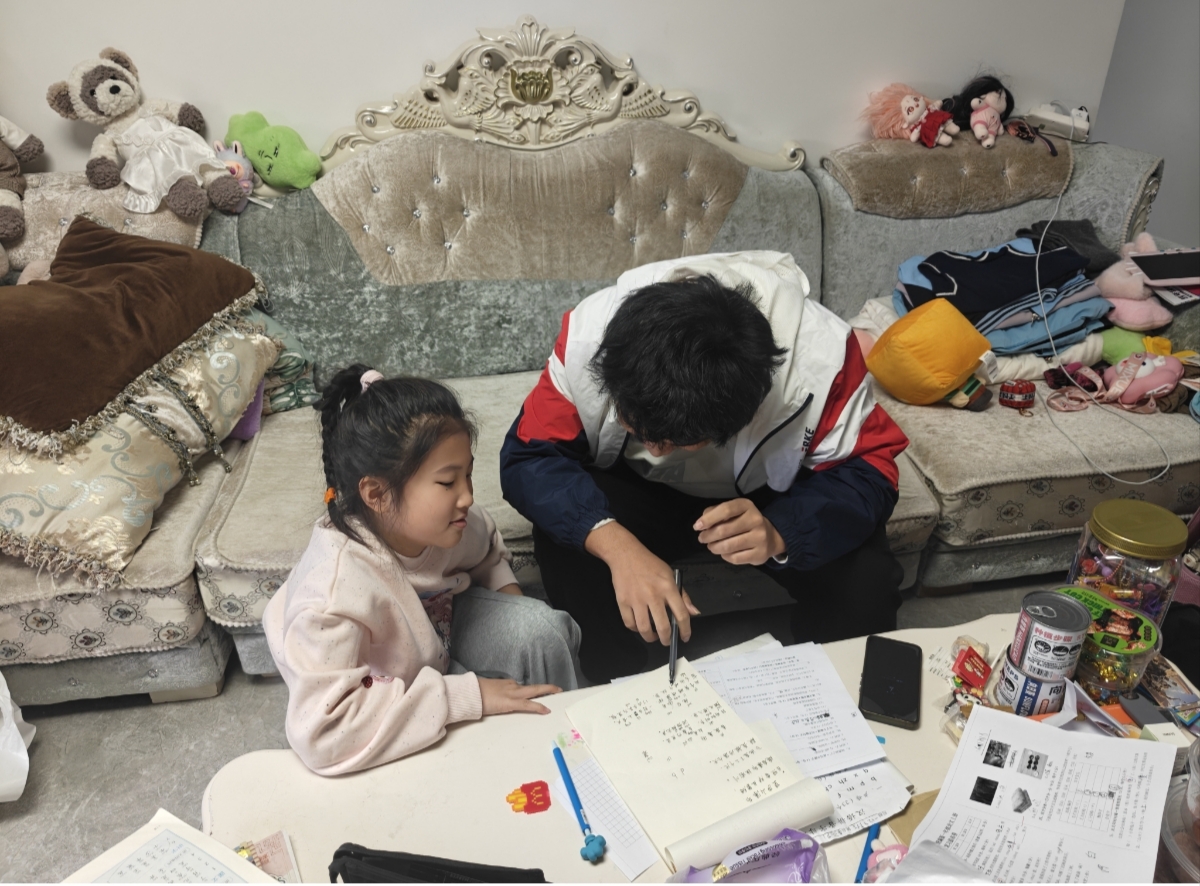 在此基础上,志愿者们从最基础的单词记忆方法入手,以生动有趣的方式讲解语法知识,并坚持每周带领小杰进行英语阅读与听力训练。渐渐地,变化悄然发生:小杰不再被动等待讲解,而是主动拿出课堂上的疑难问题,积极向志愿者请教。他的性格愈发开朗,学习主动性显著提升。