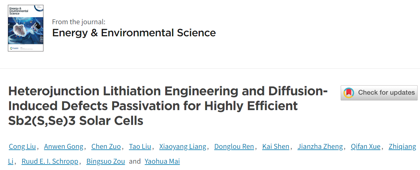 近日,能源领域顶级期刊Energy & Environmental Science(影响因子:32.4)以“Heterojunction Lithiation Engineering and Diffusion-Induced Defects Passivation for Highly Efficient Sb2(S,Se)3 Solar Cells”为题,报道了我院邹炳锁教授带领的团队关于硒硫化锑太阳电池的最新研究进展。该论文为我院首篇在Energy & Environmental Science期刊发表的研究论文,学院刘聪博士为第一作者和通讯作者,邹炳锁教授、刘焘教授和暨南大学麦耀华教授为共同通讯作者,成人色情